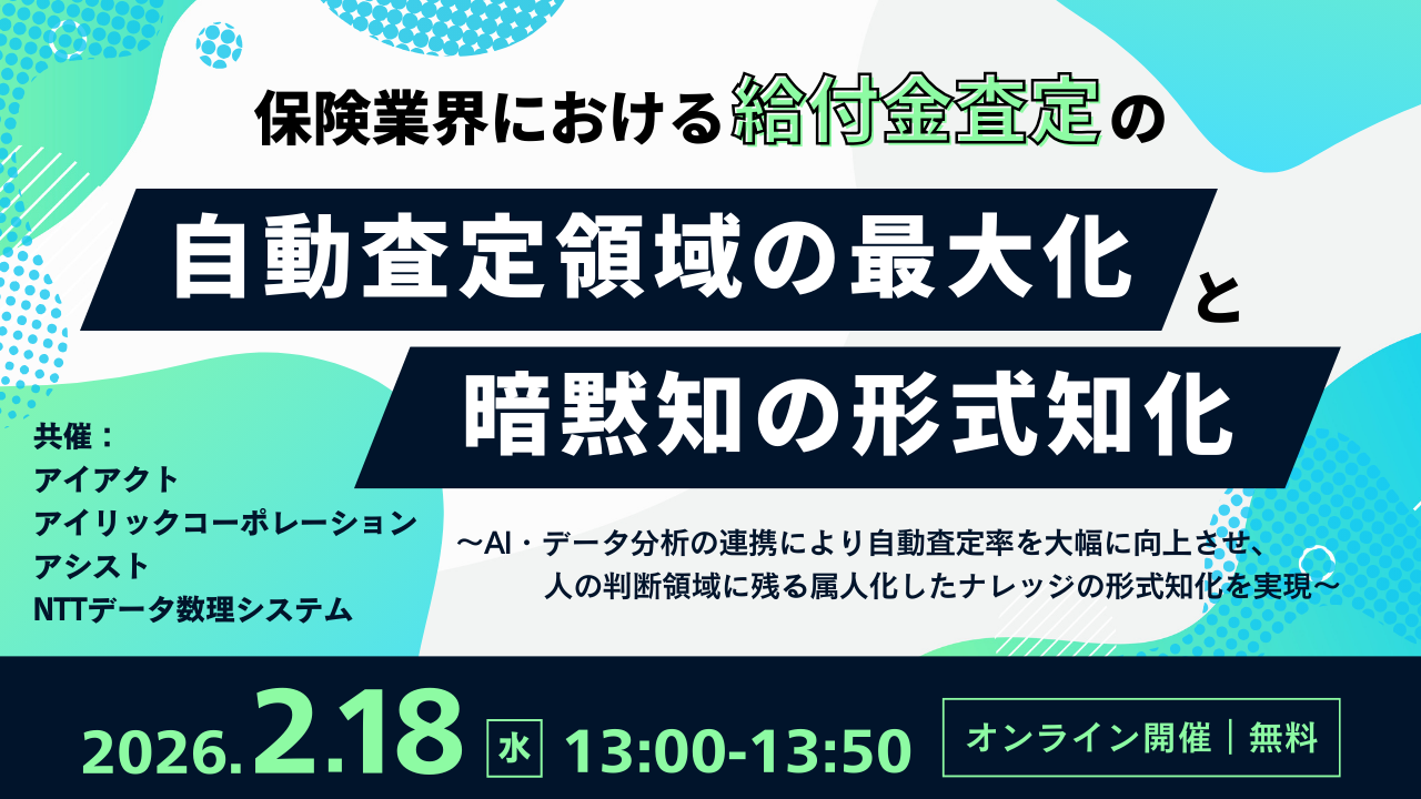『自動査定領域の最大化』と『暗黙知の形式知化』を目指す「給付金支払業務の変革」について、具体的ソリューションを交えて解説します。